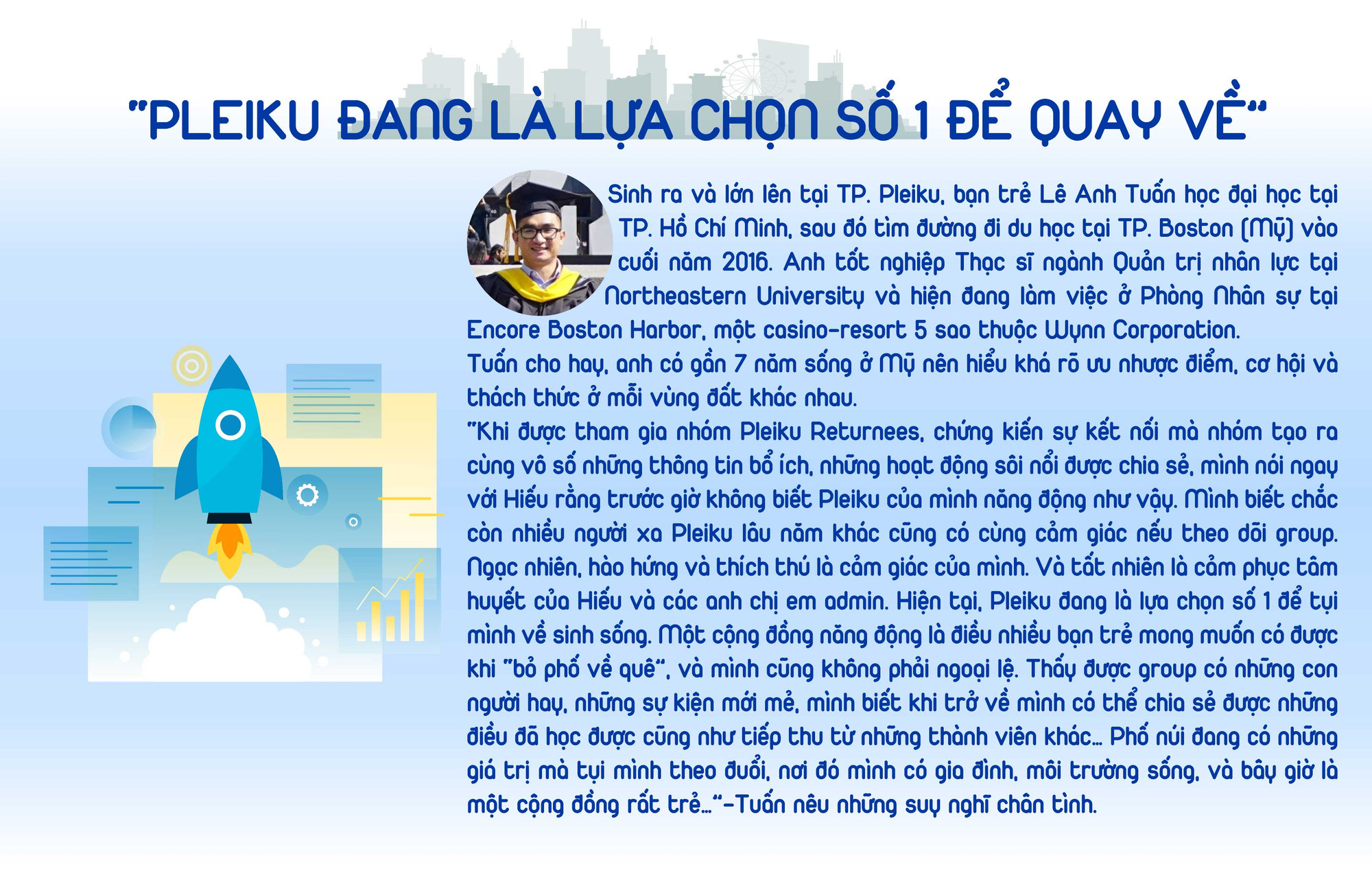 Đến giờ, ký ức cộng đồng vẫn chưa quên làn sóng Covid-19 xô đẩy nhiều nhân lực làm việc ở các thành phố lớn về lại quê hương. Đó là một trong những lý do để trở về, tuy có chút thụ động của nhiều người trẻ Pleiku. Trong số này có không ít người năng lực và tâm huyết.