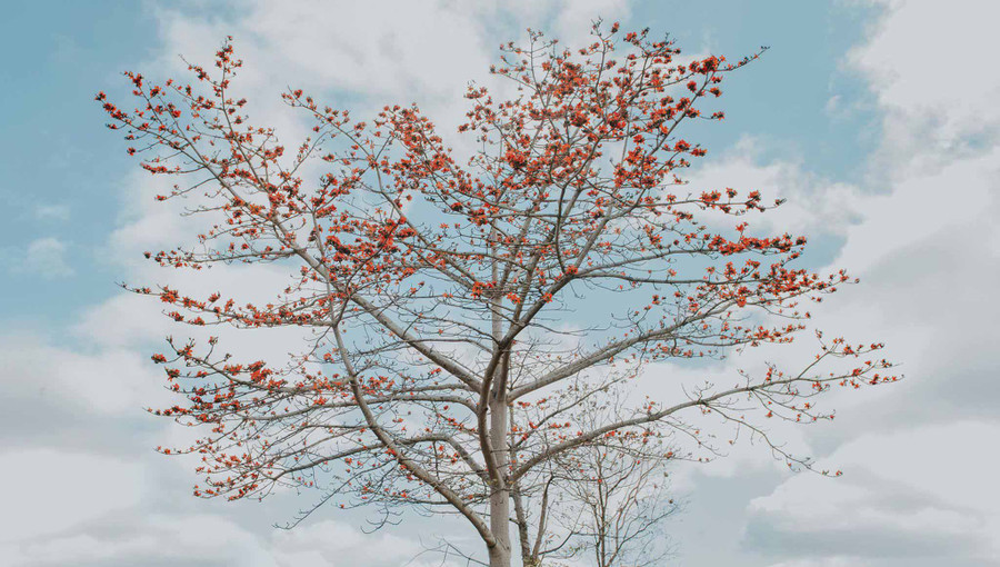 (GLO)- Cuối tháng 10, khi cao nguyên Gia Lai bước vào đầu mùa khô, sườn núi Ngô Sơn (xã Biển Hồ) bất ngờ bừng sáng bởi một loài hoa rừng đỏ như lửa. Từng chùm hoa dây leo ôm lấy những tán thông cổ thụ, nối nhau nhuộm thẫm lưng núi.