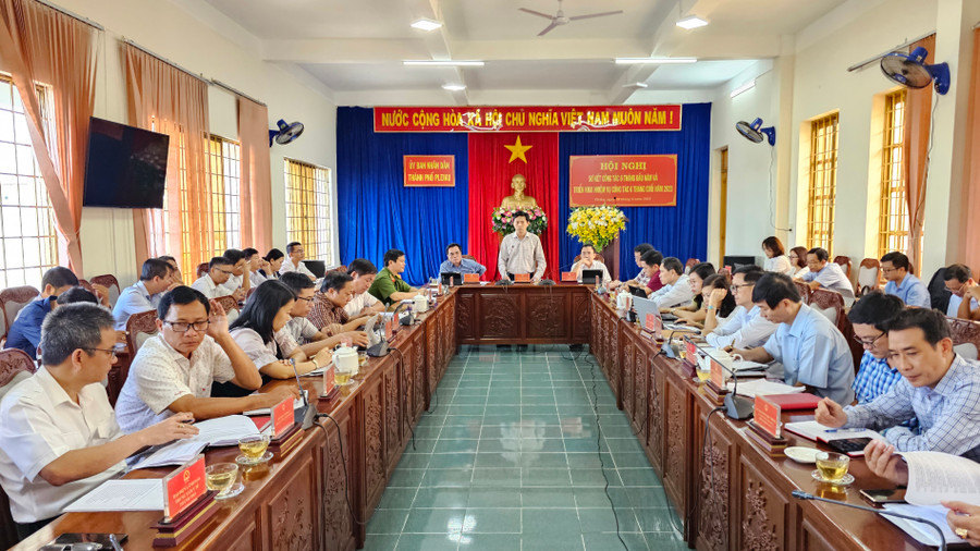 Để hoàn thành nhiệm vụ 6 tháng cuối năm 2023, Chủ tịch UBND TP. Pleiku Đỗ Việt Hưng yêu cầu các cơ quan, đơn vị, UBND các xã, phường tiếp tục tham mưu UBND thành phố triển khai có hiệu quả 3 nghị quyết, 1 chương trình của Ban Chấp hành Đảng bộ TP. Pleiku và 3 chương trình mục tiêu quốc gia; tập trung triển khai thực hiện các chỉ tiêu phát triển kinh tế-xã hội, dự toán thu, chi ngân sách, đầu tư xây dựng cơ bản năm 2023 theo kế hoạch. Đồng thời, đẩy nhanh tiến độ các công trình xây dựng cơ bản, giải ngân vốn theo kế hoạch; thực hiện kế hoạch khuyến nông, dự án ứng dụng tiến bộ khoa học công nghệ; tăng cường công tác phòng-chống dịch bệnh trên cây trồng, vật nuôi.