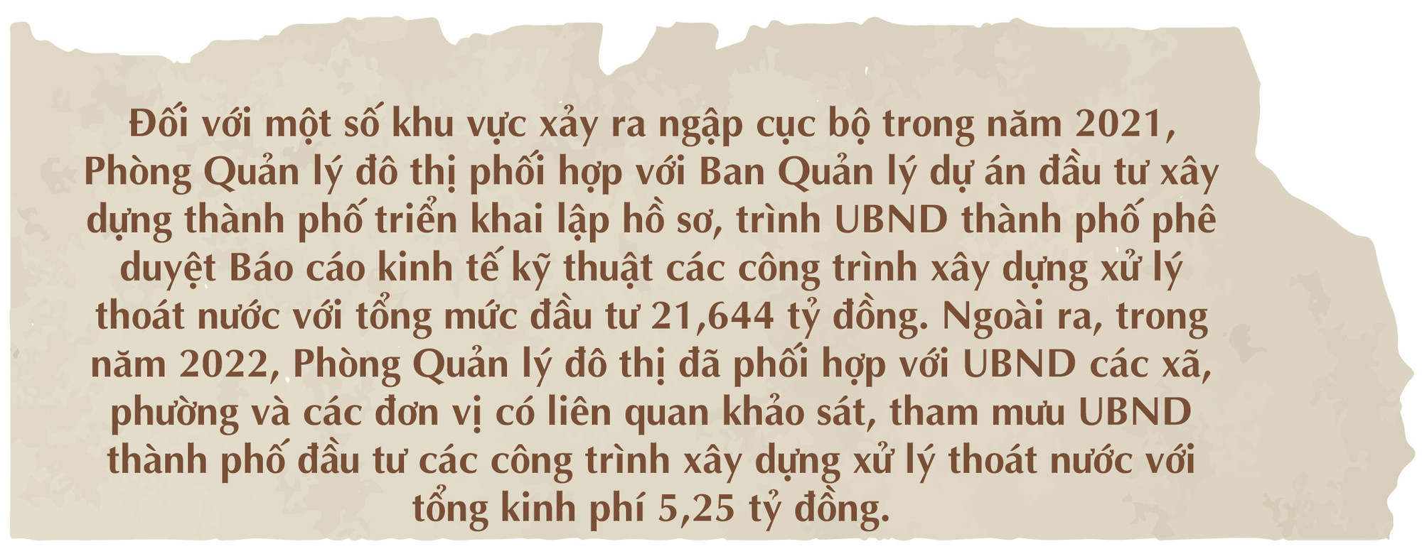 “Ủy ban nhân dân các xã, phường tăng cường công tác tuyên truyền, vận động người dân tự khơi thông cống rãnh, mương thoát nước trên các tuyến đường do địa phương quản lý; tăng cường công tác quản lý đô thị, trật tự xây dựng, kiên quyết xử lý các trường hợp xây dựng trái phép, lấn chiếm gây ảnh hưởng đến dòng chảy”-Phó Chủ tịch UBND thành phố cho biết thêm.