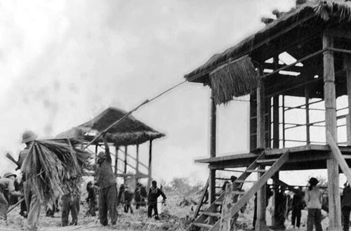 Bộ đội Quân đoàn 4 dựng lại nhà cho người dân Campuchia. Ảnh: TƯ LIỆU QUÂN ĐOÀN 4