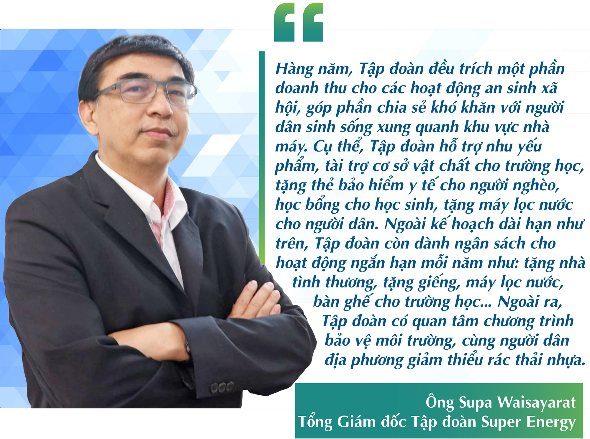Bên cạnh phát triển sản xuất kinh doanh, Tập đoàn Super Energy còn làm tốt công tác an sinh xã hội, bảo vệ môi trường.
