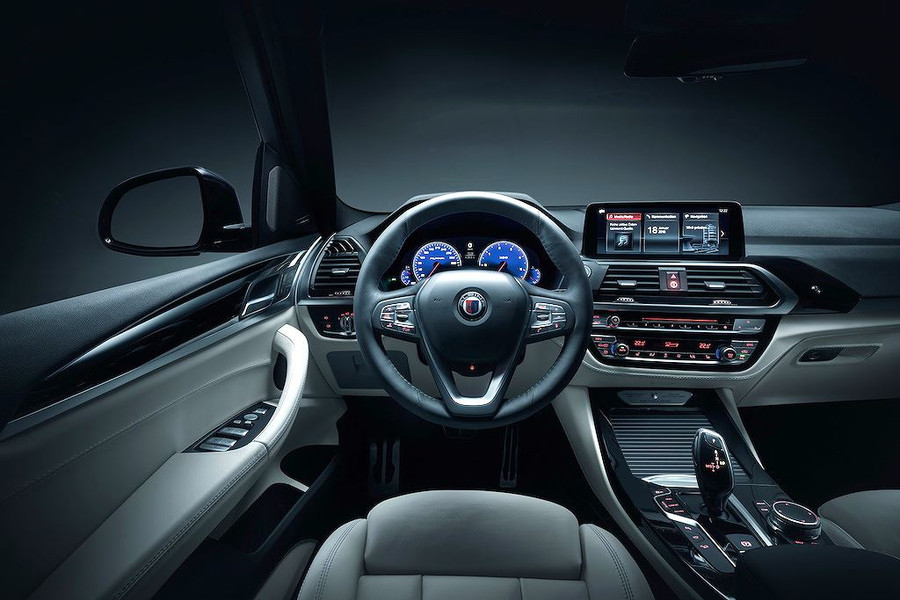 Ở bên trong nội thất, Alpina cũng không can thiệp quá nhiều vào thiết kế nguyên bản của X3. Hãng chỉ thay đổi nhẹ giao diện của bảng đồng hồ và hệ thống thông tin giải trí. Với tính năng Driving Experience Control, người lái có thể chuyển qua lại giữa các chế độ lái khác nhau chỉ bằng một nút bấm - từ chế độ thể thao nhất Sport+ tới thoải mái nhất Comfort+.