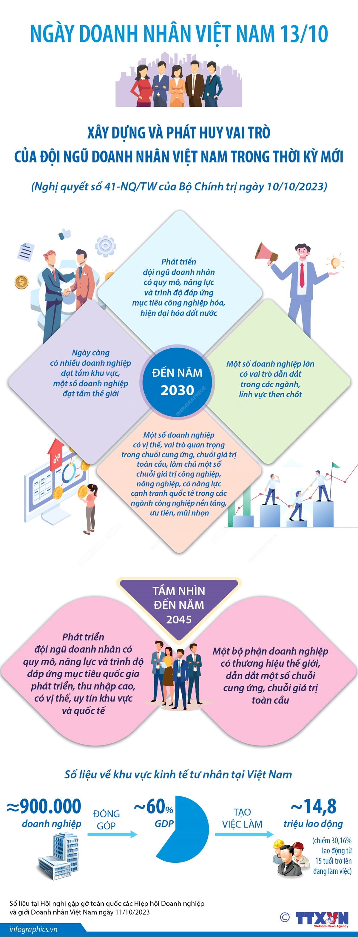 Nghị quyết đề ra mục tiêu tổng quát: Phát triển đội ngũ doanh nhân lớn mạnh về số lượng, chất lượng, cơ cấu hợp lý, có tầm nhìn, trí tuệ, đạo đức, tinh thần kinh doanh, làm giàu chính đáng, năng động, sáng tạo, năng lực quản trị tiên tiến, tuân thủ pháp luật, có đạo đức, văn hóa kinh doanh mang bản sắc dân tộc có trách nhiệm xã hội, ý thức bảo vệ môi trường, đóng góp xứng đáng cho các mục tiêu phát triển đất nước.