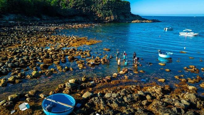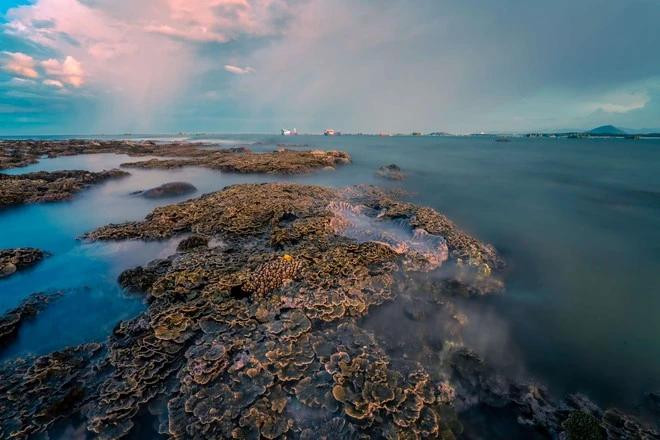 Rạn san hô Hòn Yến trong một ngày nước biển rút, như những bông hoa trên biển