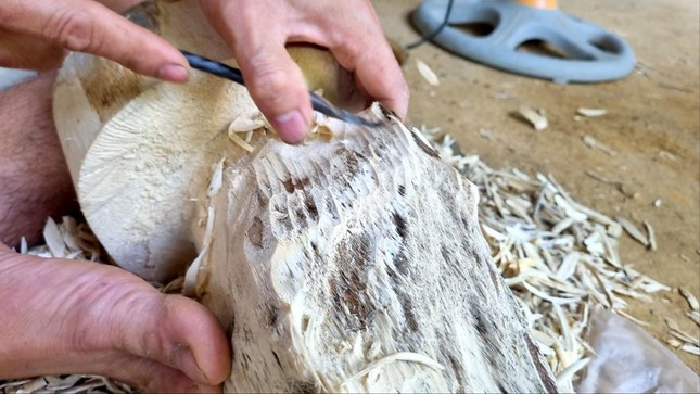 | Người thợ xoi trầm trải qua nhiều công đoạn công phu, tỉ mỉ. |