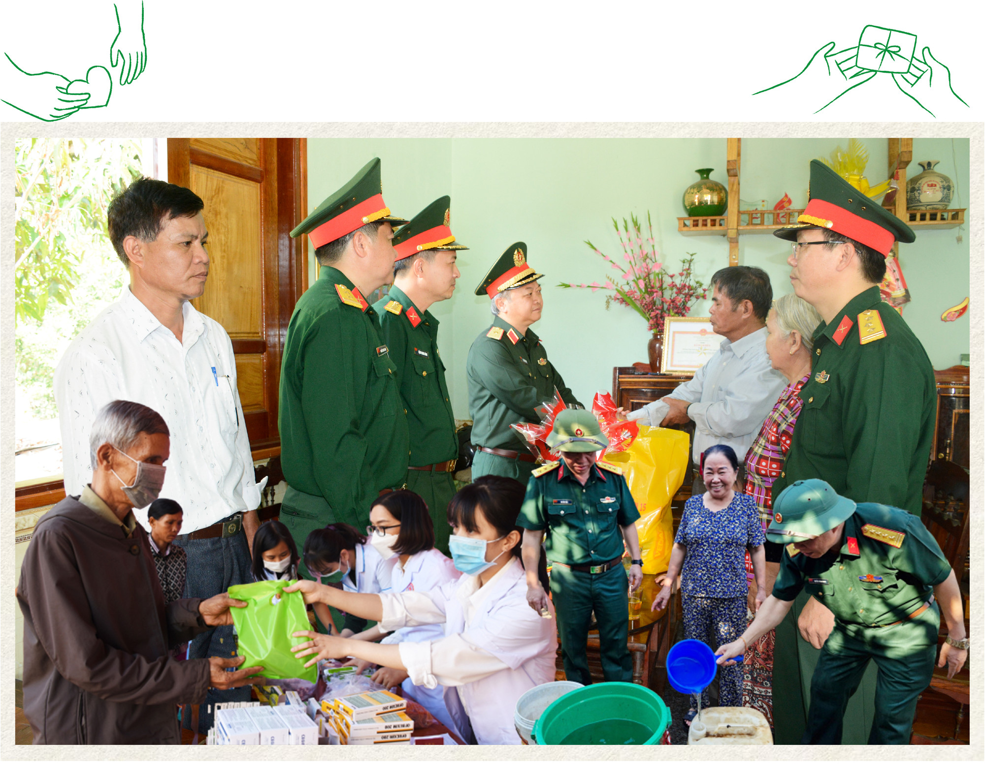 Với phương châm phát triển cao su ở đâu đưa người dân và hình thành cụm dân cư ở đó, đến nay đơn vị đã xây dựng 266 cụm điểm dân cư trên vành đai biên giới. Ngoài ra, Binh đoàn còn xây dựng 1 Bệnh viện Quân y và 10 bệnh xá để khám bệnh, chăm sóc sức khỏe ban đầu cho người lao động và Nhân dân. Cùng với đó, xây dựng 11 trường mẫu giáo với 130 điểm trường và 332 nhóm với 223 lớp chăm sóc và giáo dục gần 7.000 cháu bậc học mầm non. Đặc biệt, từ năm 2002 đến nay, Binh đoàn đã đầu tư hơn 100 tỷ đồng để hỗ trợ các địa phương xây dựng nông thôn mới, làm đường giao thông, kéo điện, hỗ trợ giống cây trồng, vật nuôi. Trong quá trình tái canh cây cao su, đơn vị đã cho người dân mượn hàng trăm ha đất để trồng lúa và các loại cây ngắn ngày nhằm chủ động về lương thực.