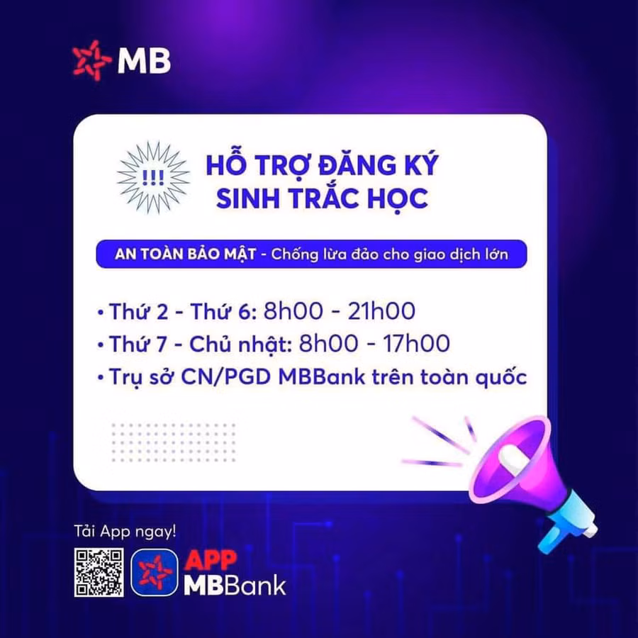 (GLO)- Ngân hàng TMCP Quân đội sẽ mở cửa từ thứ 2 đến Chủ nhật đón tiếp và hỗ trợ khách hàng đăng ký sinh trắc học.
