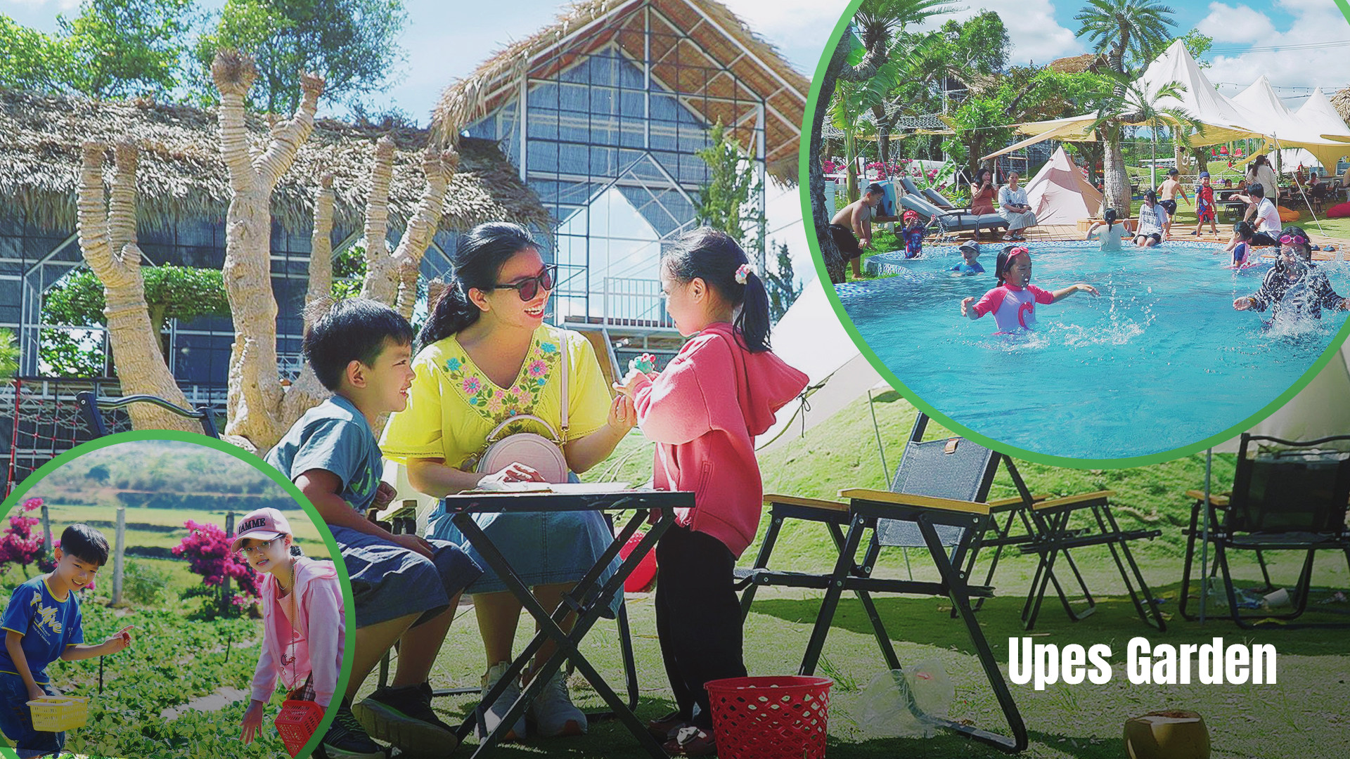 Với diện tích hơn 4 sào, Upes Garden là một quán cà phê kết hợp với khu vườn trồng dâu tây, cà chua Nova, khu vui chơi, hồ bơi và phục vụ ăn uống, tiệc ngoài trời. Thời gian gần đây, quán trở thành điểm dừng chân, nghỉ ngơi, chụp ảnh của nhiều du khách gần xa.
