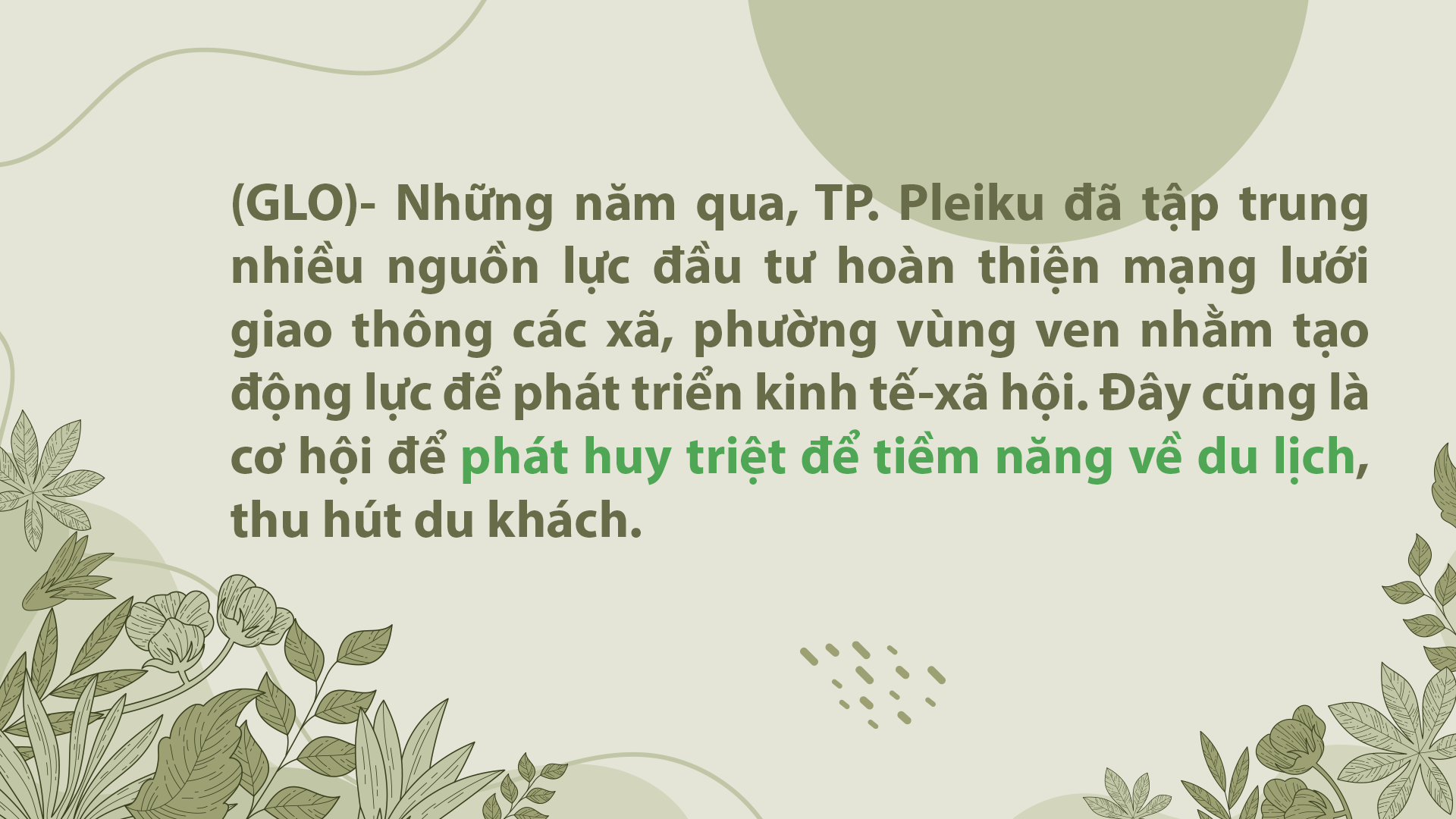 Cùng với đó, thành phố ưu tiên nguồn lực đảm bảo hoàn thành việc phát triển du lịch, hình thành theo hướng tập trung chủ yếu vào các khu vực nông thôn, cụ thể như: ban hành Đề án xây dựng làng văn hóa du lịch cộng đồng tại làng Ia Nueng (xã Biển Hồ) và làng Ốp (phường Hoa Lư), Khu danh thắng Biển Hồ; Khu di tích lịch sử cách mạng Khu 9 (làng C, xã Gào)...
