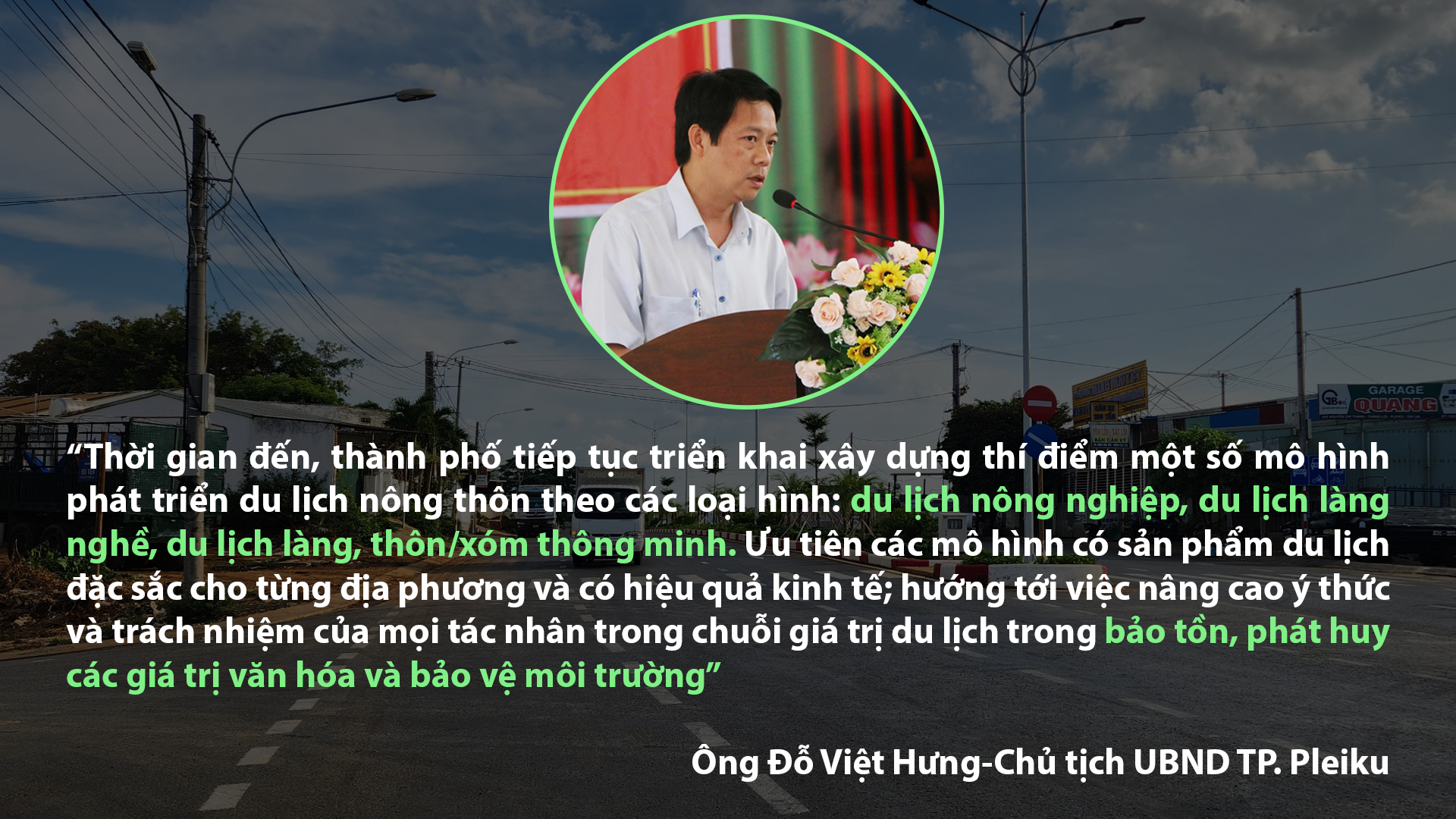 Trao đổi với P.V, ông Đỗ Việt Hưng-Chủ tịch UBND TP. Pleiku-thông tin: Những năm qua, thành phố đã tập trung phát triển du lịch nông thôn và tích hợp, bổ sung trong định hướng phát triển kinh tế-xã hội, quy hoạch nông thôn; ưu tiên phát triển du lịch ở những nơi có lợi thế về điều kiện tự nhiên.