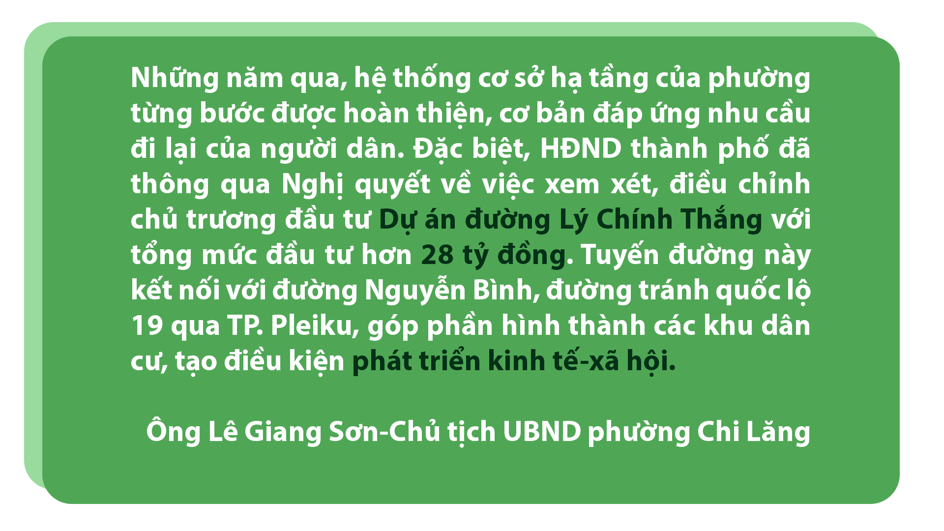 Các hộ dân sống dọc đường Lý Chính Thắng rất phấn khởi trước thông tin tuyến đường này được đầu tư nâng cấp, mở rộng. Ông Nguyễn Thanh Sơn (tổ 4) vui vẻ nói: “Tuyến đường hiện còn nhỏ hẹp, nhiều đoạn xuống cấp. Nếu tuyến đường được đầu tư, tôi tình nguyện tháo dỡ, di dời vật kiến trúc nhằm tạo điều kiện thuận lợi để thi công”.
