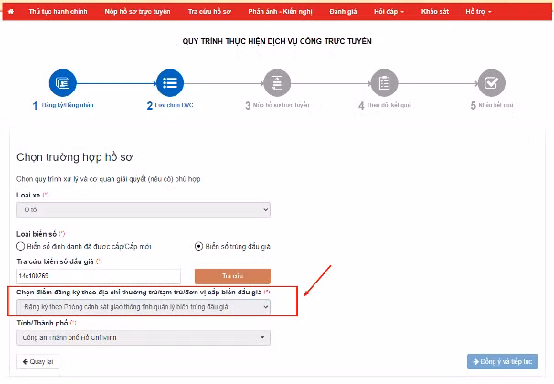 Bước tiếp theo, công dân chọn điểm đăng ký xe
