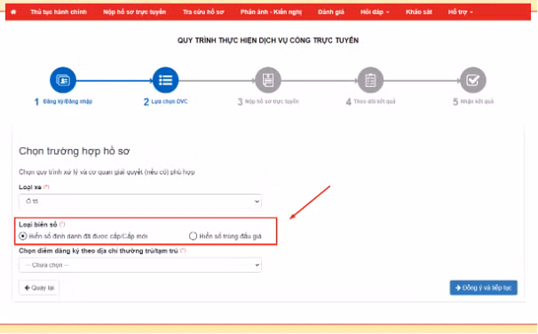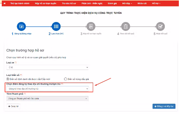 Bước 4: Chọn trường hợp hồ sơ