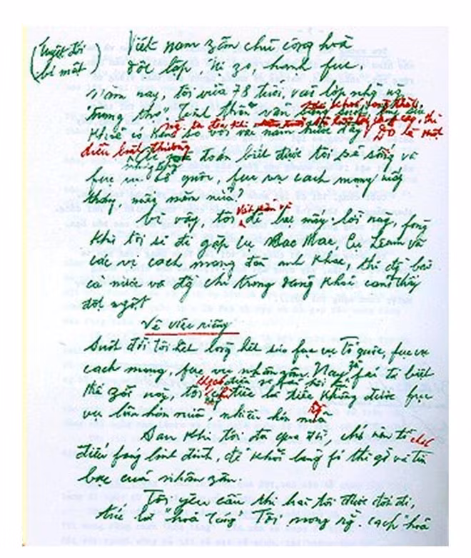 | Bút tích di chúc của Bác Hồ. ẢNH: TƯ LIỆU |