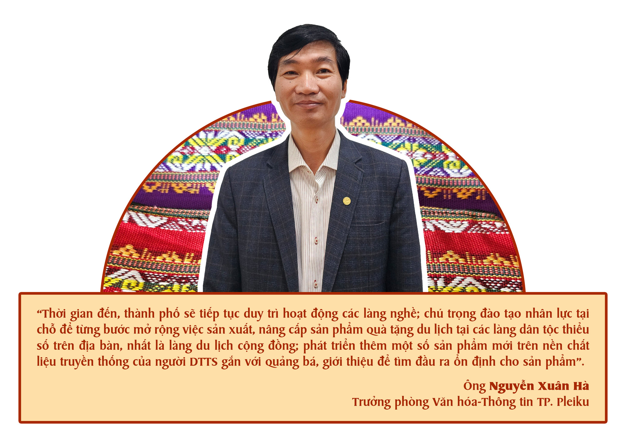 “Ngoài ra, ngành Văn hóa cũng đang hướng đến việc tổ chức cuộc thi thiết kế sản phẩm quà tặng du lịch gắn với bản sắc văn hóa đặc trưng của địa phương để tạo cơ hội cho các cơ sở sản xuất, nghệ nhân phát huy khả năng sáng tạo; qua đó, lựa chọn được những sản phẩm tiêu biểu để xây dựng nên thương hiệu du lịch của Phố núi”-ông Hà thông tin thêm.