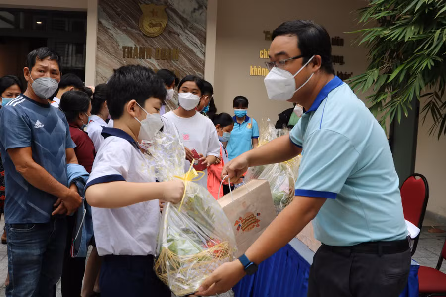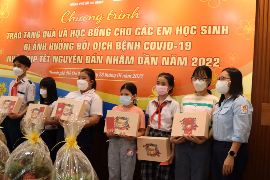 Ngày 28.1, Hội đồng Đội TP.HCM tổ chức trao quà tết, kèm phần hỗ trợ học tập cho 140 trẻ em mồ côi cha, mẹ do dịch bệnh Covid-19, với tổng kinh phí gần 500 triệu đồng.