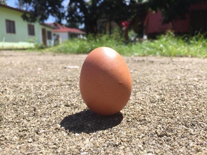 Ông Hakeem Maafof, người Malaysia đã quay những quả trứng mà ông dựng đứng trên vỉa hè lát đá khi được nghe giả thuyết này qua một người bạn và chia sẻ trên Facebook.