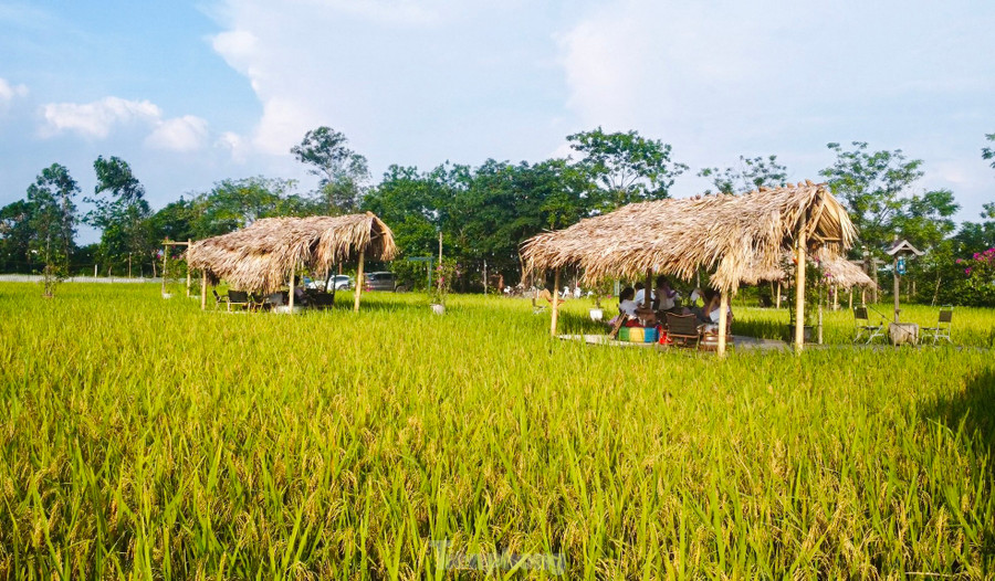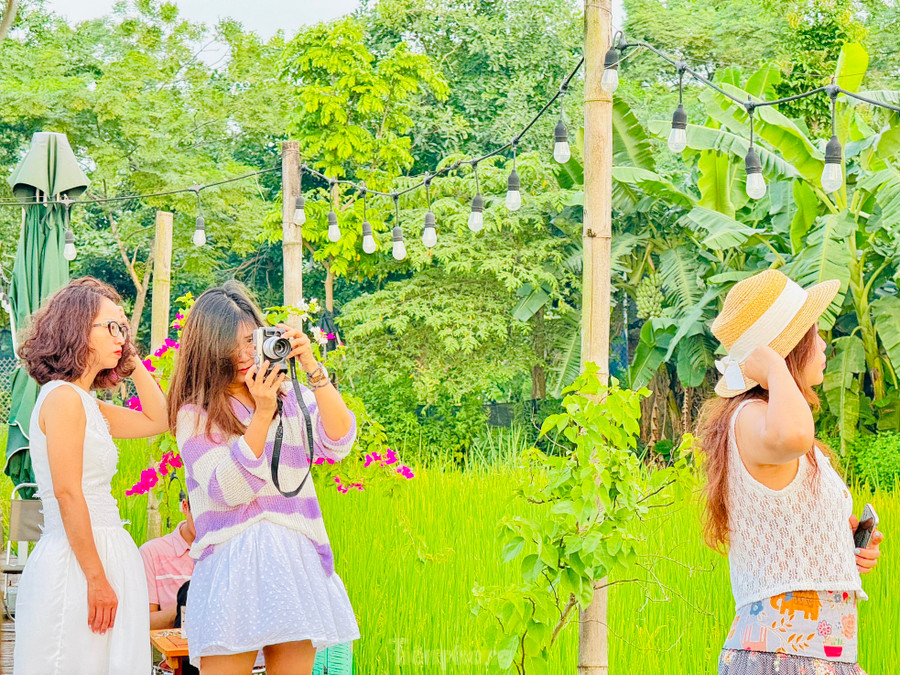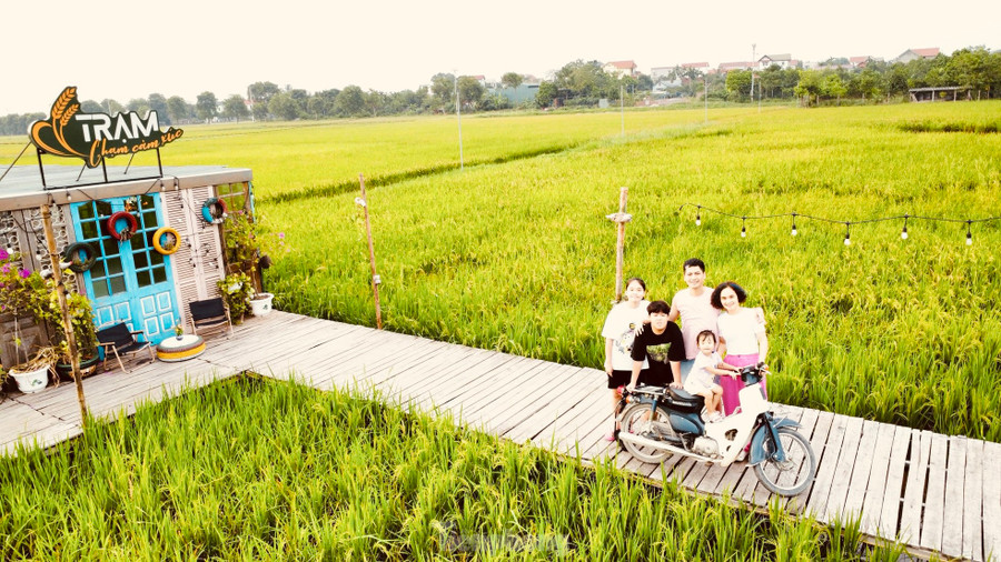 | Đầu tháng 6 là lúc cả cánh đồng lúa chuyển dần từ xanh sang vàng và bắt đầu bước vào mùa gặt. Ngoài uống cà phê, thưởng thức các bữa ăn hương đồng gió nội, du khách còn được trải nghiệm gặt lúa cùng bà con, hít hà hương lúa thơm nồng. |