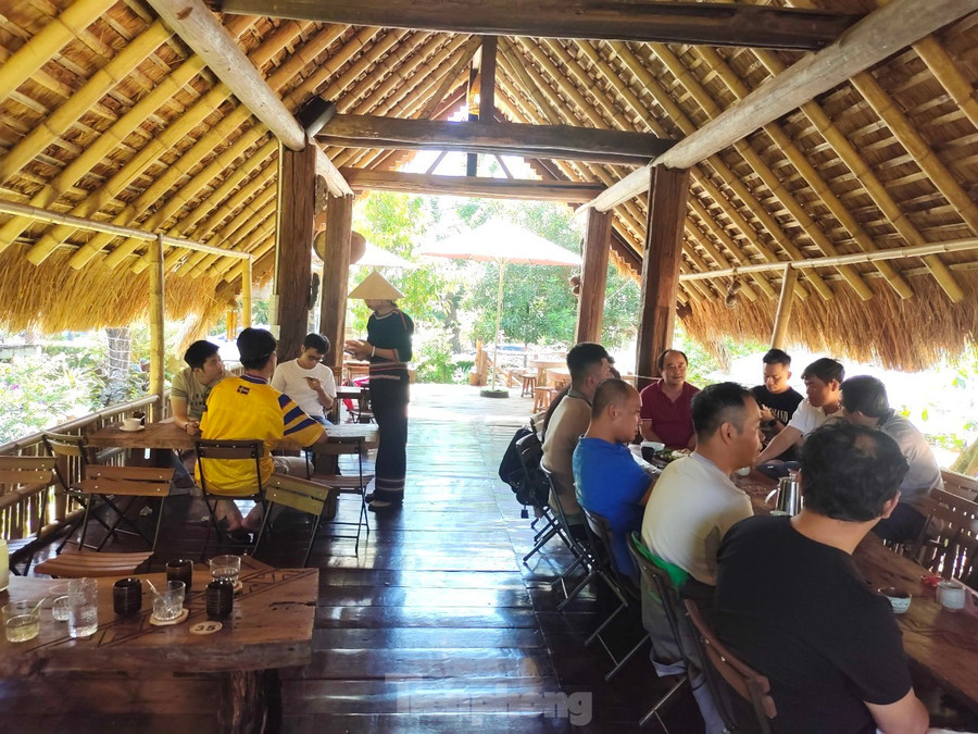 Quán cà phê nhà sàn thiết kế theo không gian mở thu hút du khách. Các bạn trẻ ấn tượng với không gian mới mẻ, được trang trí theo phong cách truyền thống của người dân tộc bản địa. |
