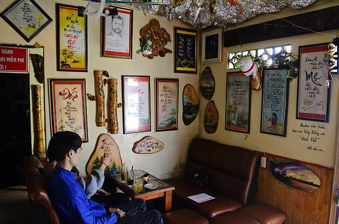 Khách đến quán đa phần là những bạn trẻ, khách du lịch phương xa. Bên cạnh những dòng thư pháp ý nghĩa, giai điệu trữ tình, lãng mạn của các bản nhạc xưa sẽ khiến bạn cảm thấy bình yên và thoải mái.