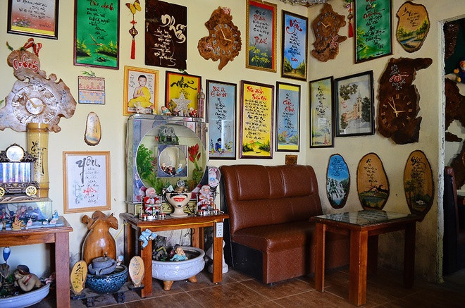 Gần đây, thấy mô hình thư pháp của mình đã cũ, ông Vinh quyết định xây dựng một “ngôi nhà kỳ quái” nhưng trang trí thêm nhiều câu thư pháp bên trong cùng những hình nộm tạo cảm giác khiếp sợ.