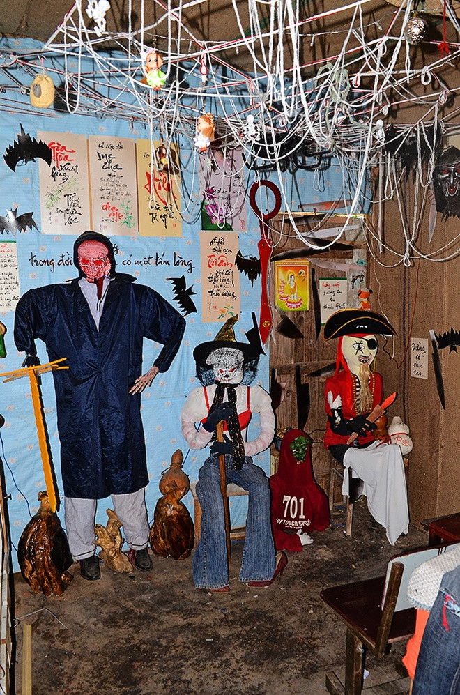 “Tôi chỉ muốn mọi người không sợ ma, can đảm hơn, tự tin hơn trong cuộc sống nhờ không gian mà tôi làm ra. Những câu thư pháp được viết trên vách tường, cạnh các hình nộm lắm lúc làm mọi người sợ nhưng nếu bình tĩnh bạn sẽ nhìn thấy những giá trị khiến bạn không còn sợ ma nữa”-ông Vinh chia sẻ.