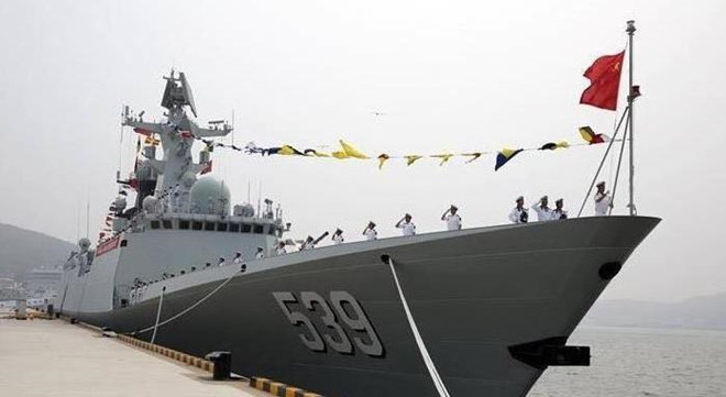 Tàu chiến Trung Quốc neo đậu tại căn cứ hải quân Ream hồi tháng 1. Ảnh: Cambodia News.