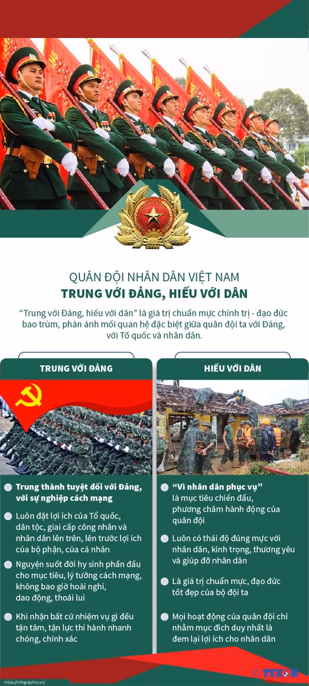 Trong suốt 75 năm qua, bất luận trong hoàn cảnh nào, Quân đội nhân dân Việt Nam cũng luôn tuyệt đối trung thành với Đảng, hết lòng phụng sự Tổ quốc, phục vụ nhân dân.
