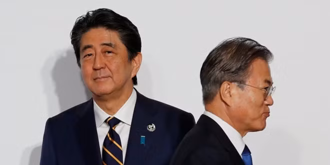Quan hệ giữa Hàn Quốc và Nhật Bản rơi xuống mức thấp nhất trong nhiều năm sau các phán quyết của Tòa án Tối cao Hàn Quốc yêu cầu các công ty Nhật Bản bồi thường cho những nạn nhân bị cưỡng bức lao động trong thời gian Nhật Bản đô hộ Bán đảo Triều Tiên từ năm 1910 tới cuối Thế chiến 2. Nhật Bản luôn khẳng định vấn đề bồi thường đã được hai bên dàn xếp trong hiệp định ký kết năm 1965, theo đó Nhật Bản bồi thường bằng hình thức hỗ trợ tài chính trị giá 500 triệu USD. Tuy nhiên, phía Hàn Quốc vẫn tiếp tục thực hiện phán quyết của tòa án, tịch thu và thanh lý tài sản của các công ty Nhật Bản.
