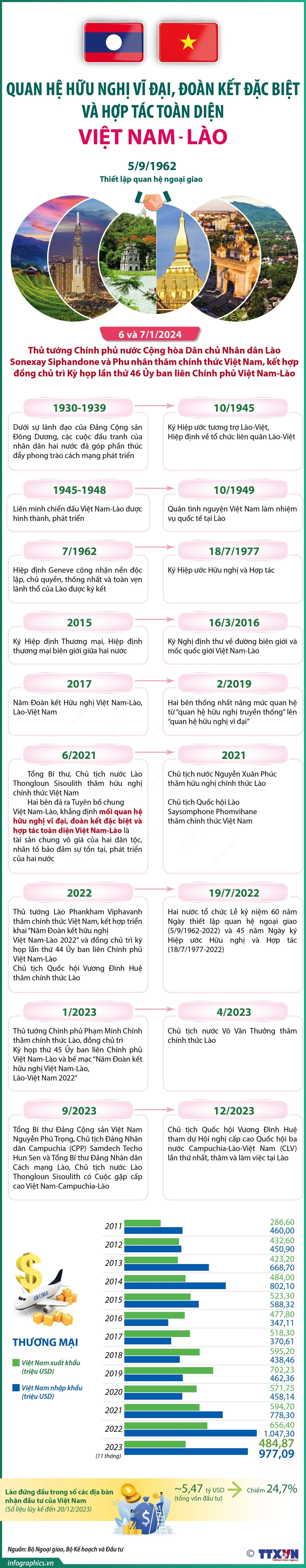 Trong lịch sử quan hệ quốc tế, mối quan hệ hữu nghị vĩ đại, đoàn kết đặc biệt và hợp tác toàn diện giữa Việt Nam và Lào là một điển hình, một hình mẫu hiếm có về sự gắn kết bền chặt, thủy chung, trong sáng và đầy hiệu quả giữa hai dân tộc đấu tranh vì độc lập, tự do và tiến bộ xã hội.