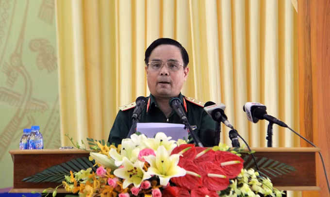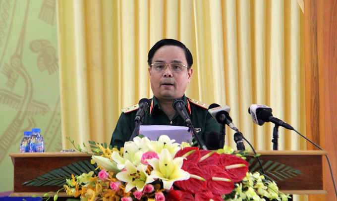 Thượng tướng Lê Chiêm – Thứ trưởng Bộ Quốc phòng phát biểu tại hội thảo.
