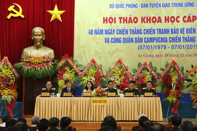 Chiều nay (28.12), tại An Giang, Bộ Quốc phòng phối hợp với Ban Tuyên giáo Trung ương, Tỉnh uỷ An Giang tổ chức hội thảo khoa học cấp quốc gia “40 năm ngày chiến thắng chiến tranh bảo vệ biên giới Tây Nam của tổ quốc và cùng quân dân Campuchia chiến thắng chế độ diệt chủng (7.1.1979-7.1.2019)”.
