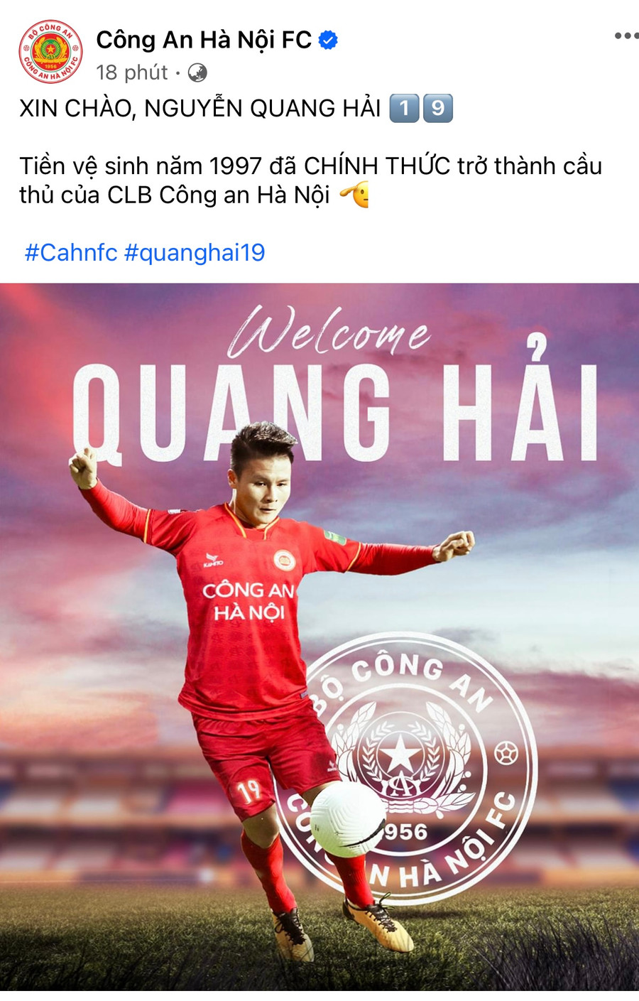 Tiền vệ Nguyễn Quang Hải cùng người đại diện đã chốt xong các thỏa thuận để gia nhập CLB Công an Hà Nội. Cầu thủ sinh năm 1997 sẽ khoác áo đội bóng thủ đô trong phần còn lại của mùa giải. Như vậy, chỉ sau 1 năm sang nước ngoài chơi bóng, Quang Hải đã trở về Việt Nam thi đấu. Ở CLB Công an Hà Nội, Quang Hải hứa hẹn sẽ nhận mức đãi ngộ cao, thậm chí cao chưa từng có trong lịch sử thu nhập của cầu thủ nội.
