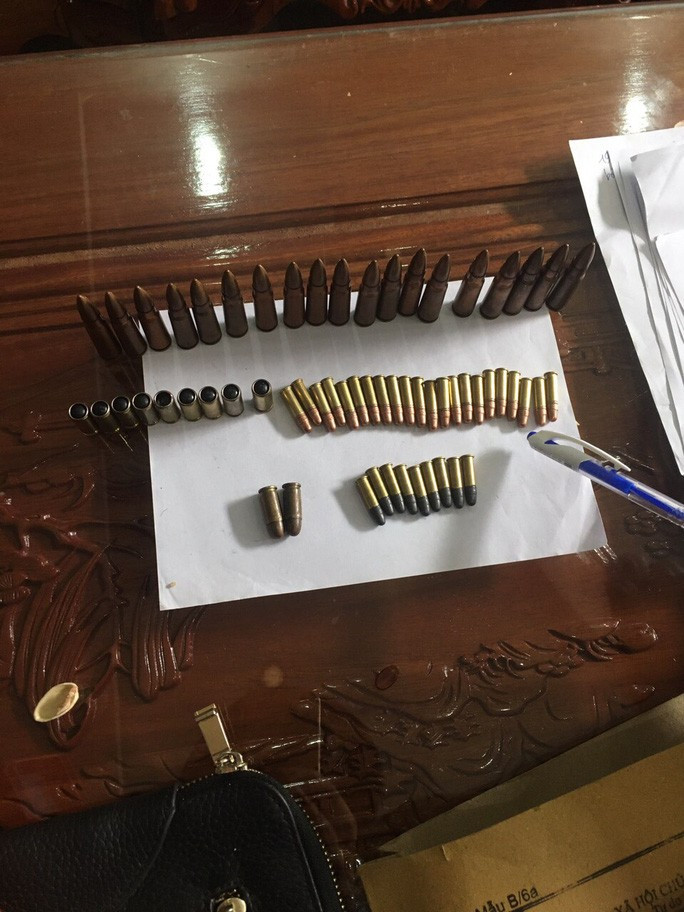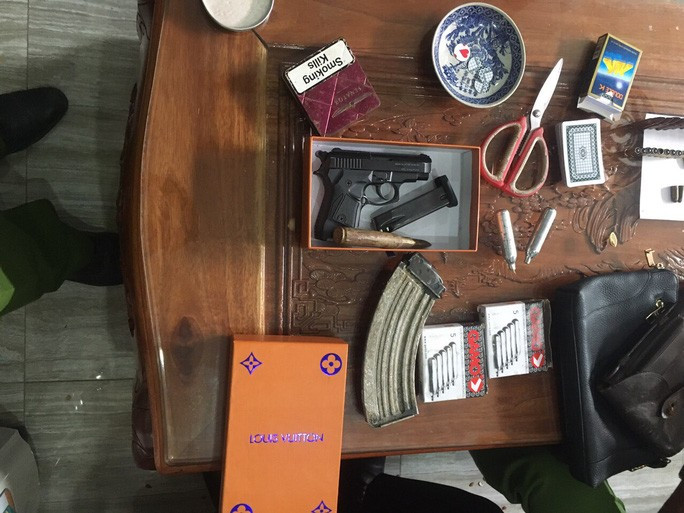 | Súng đạn và nhiều hàng nóng thu giữ tại nhà Vinh Ảnh: Công an cung cấp |