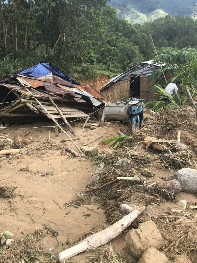 Trưa 1-11, ông Đinh Quang Ven, Chủ tịch UBND huyện Sơn Tây (Quảng Ngãi), cho biết sau cơn bão số 9, tại làng Hang Rin, thôn Mang He, xã Sơn Bua (giáp ranh xã Trà Vân, huyện Nam Trà My, tỉnh Quảng Nam) xảy ra vụ sạt lở đất kèm lũ quét vào sáng 30-10, cuốn trôi 6 nhà dân trong tích tắc. May mắn không có ai chết hay bị thương.