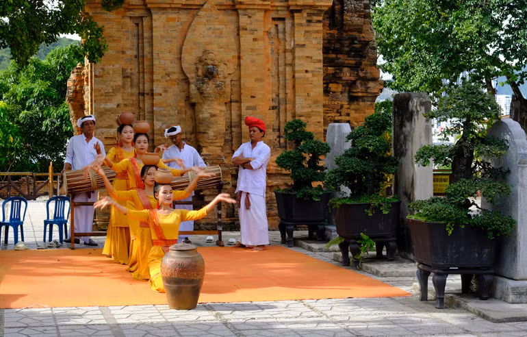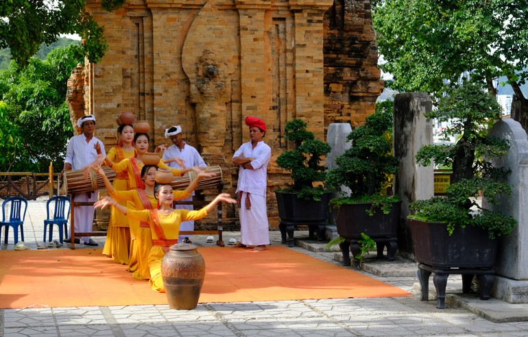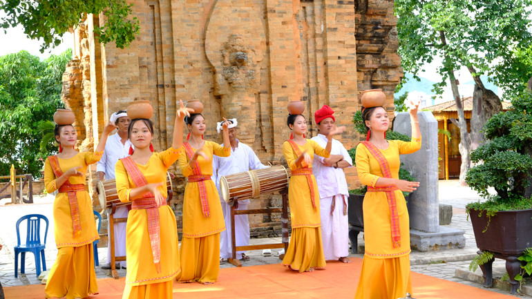 Đến khu di tích này, du khách sẽ nhận thấy những điệu múa Chăm “không sân khấu hóa”, mà thể hiện được mộc mạc. Ông Nguyễn Tuấn Dũng - Phó Giám đốc Trung tâm Bảo tồn Di tích tỉnh Khánh Hòa cho biết: “Tháp Bà là công trình kiến trúc có giá trị rất lớn về văn hóa, đồng thời là nơi để du khách đến tham quan du lịch. Chính vì những yếu tố đó, Trung tâm Bảo tồn di tích tỉnh Khánh Hòa đưa điệu múa Chăm cùng các nhạc cụ của người Chăm múa ở dưới chân của Tháp Bà Ponagar. Chúng tôi “không sân khấu hóa” múa Chăm để giữ được “cái hồn” của người Chăm trong các bài múa. Từ đó tạo sự lan tỏa văn hóa của người Chăm cũng như người Việt đến du khách quốc tế”.