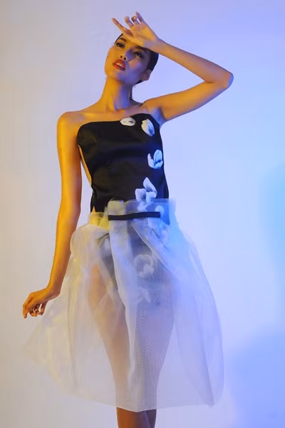 Các thiết kế trong bộ sưu tập 'Anh dứa em thơm' mang đến góc nhìn gần gũi và trực quan về thời trang xanh từ vải sợi dứa - chất liệu vải sợi từ nguồn nguyên liệu bản địa đầu tiên tại Việt Nam có chứng nhận giảm phát thải CO2.