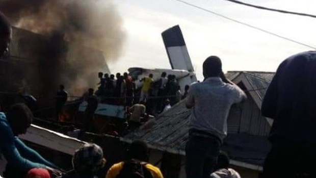 Máy bay bị rơi tại CHDC Congo. (Ảnh: BBC)