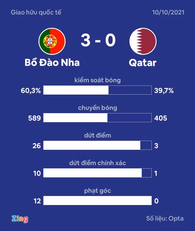 Với pha đệm bóng tung lưới Qatar rạng sáng nay (10/10), Cristiano Ronaldo đã chọc thủng lưới 46 đội tuyển khác nhau trong sự nghiệp quốc tế. Đây là thành tích không cầu thủ nào trong lịch sử có thể chạm đến.