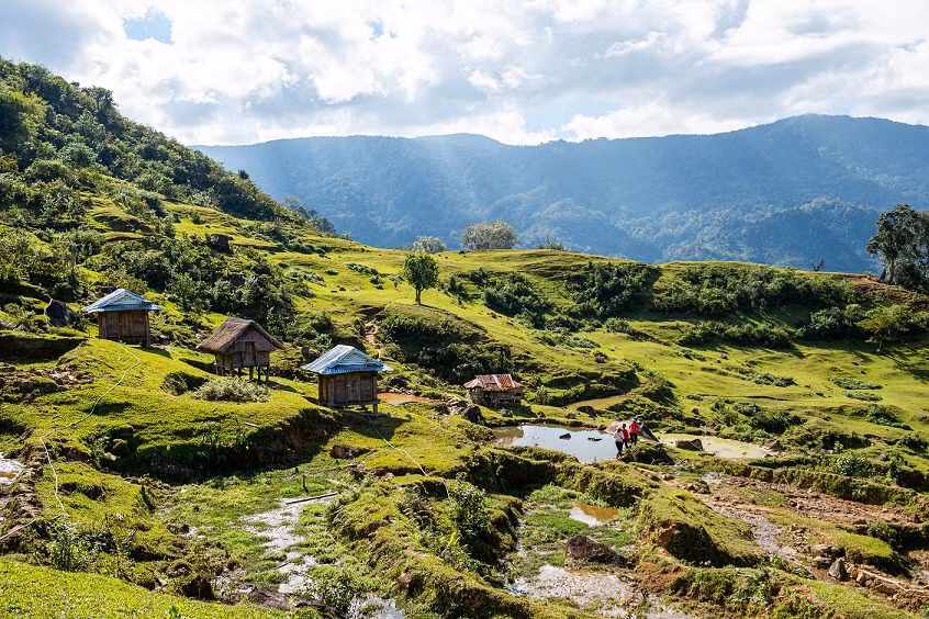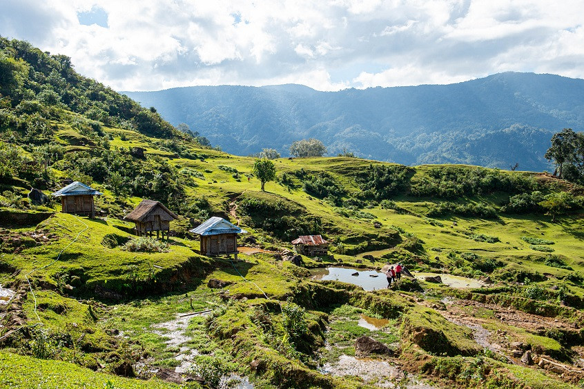 Để đến vườn sâm dây, phải băng qua nhiều ngọn đồi. Ảnh: ĐT