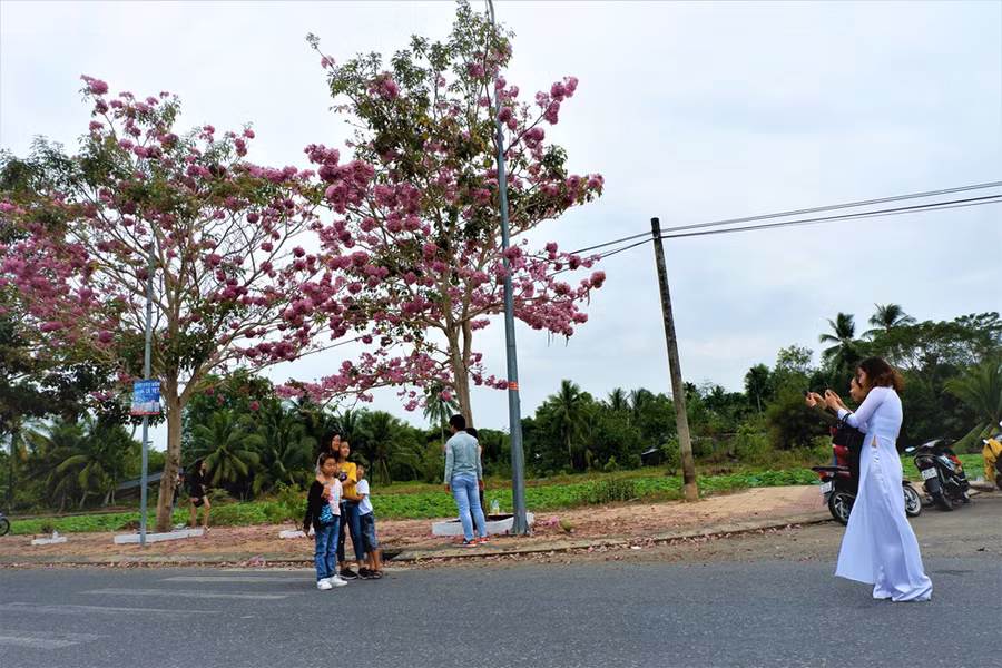 Bạn Ngọc Trân sống tại Cần Thơ cho biết: “Năm ngoái mình đã nghe đến con đường hoa kèn hồng này rồi nhưng vì đi quá trễ nên khi xuống tới hoa đã tàn rất nhiều, năm nay tranh thủ mới trổ hoa là mình đã cùng bạn bè làm một chuyến “phượt” đến đây".