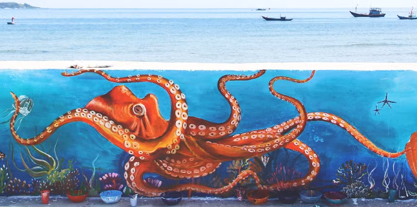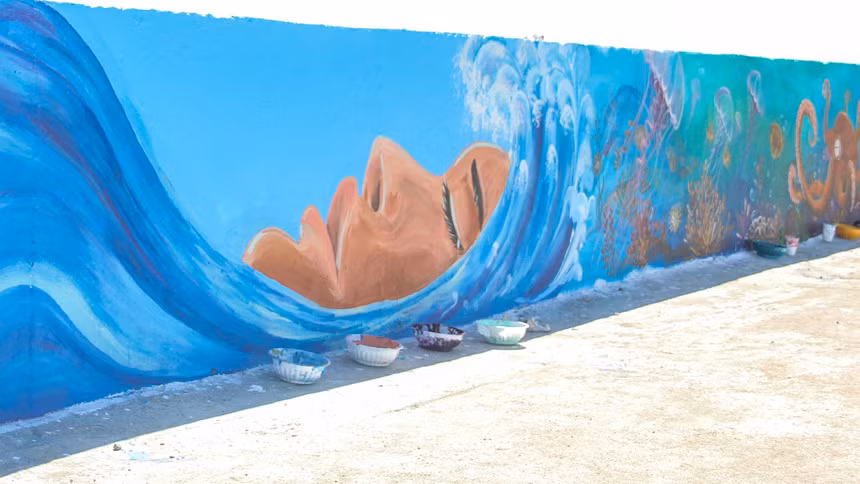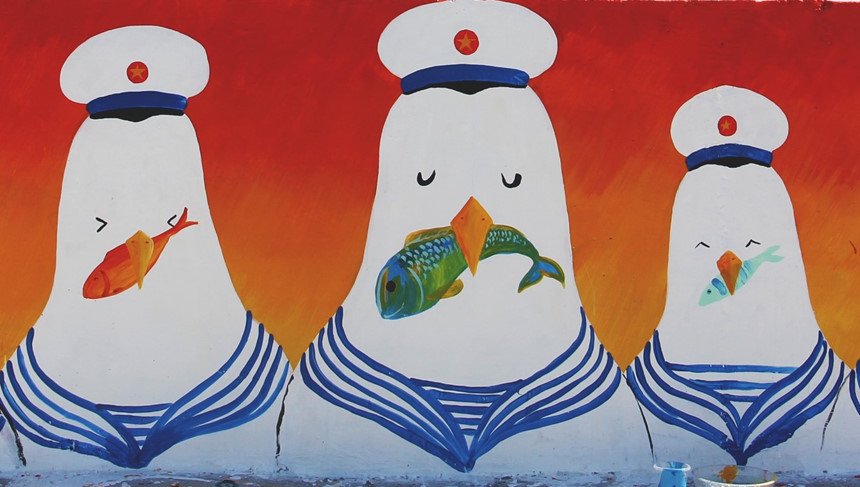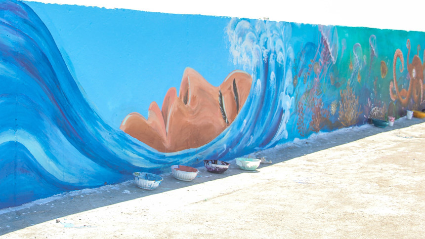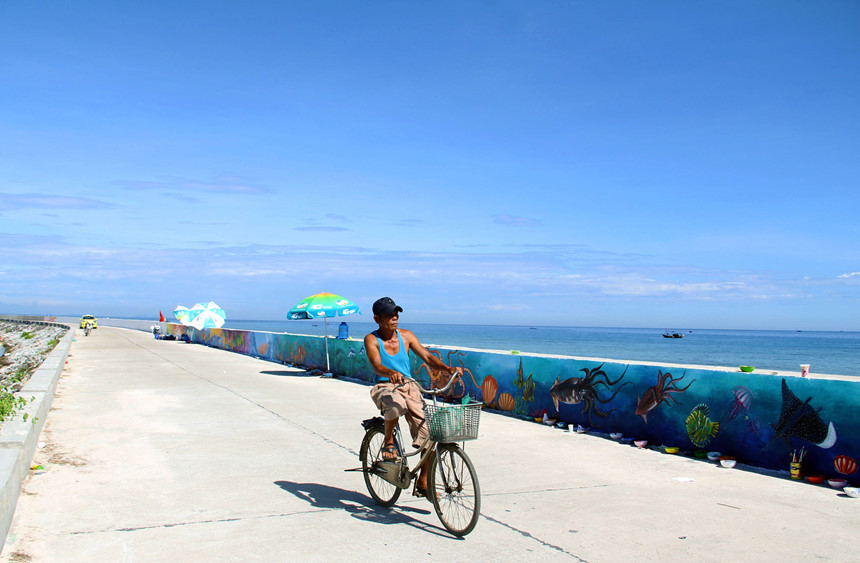 Những ngày đầu tháng bảy đổ lửa, khi tới tham quan đảo Lý Sơn (Quảng Ngãi), du khách có thể chiêm ngưỡng những bức tranh tường sống động đầy màu sắc trên con đường mới ngang biển, dẫn từ cảng chính đến cổng Tò Vò.