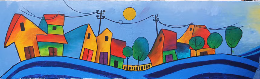 Với các ngôi làng bích họa khác, mỗi bức tường sẽ là một khuôn hình riêng biệt. Tuy nhiên để có thể vẽ trên một con đường liền mạch cần có sự nhất quán và chủ đề xuyên suốt.