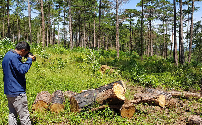 Cụ thể, vụ việc này được người dân phát hiện và trình báo chính quyền địa phương và Hạt Kiểm lâm (KL) H.Bảo Lâm từ tháng 4.2019, khi thấy một người đàn ông cưa hạ rừng thông và chôn lấp ngay tại chỗ. Thời điểm này, ông Giáp Văn Tĩnh, Hạt phó Hạt KL H.Bảo Lâm, cùng một số KL có vào hiện trường kiểm tra nhưng vụ việc không được giải quyết dứt điểm. Do đó, đầu tháng 7.2019, người dân tiếp tục gửi đơn tố cáo lên Chi cục KL và UBND tỉnh Lâm Đồng.