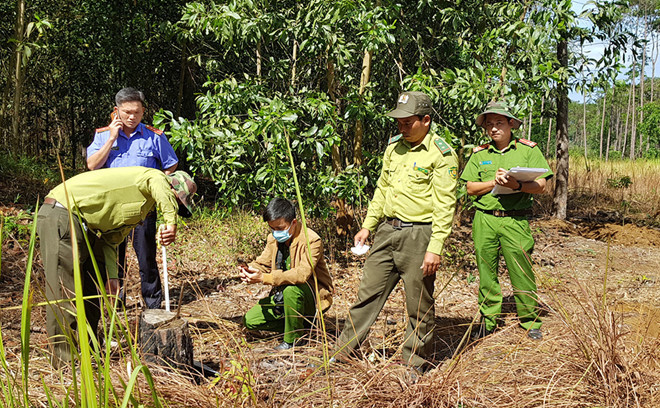 Ông Phan Duy Tâm, Chủ tịch UBND xã Lộc Phú, cho biết khoảnh rừng các cơ quan chức năng đang khám nghiệm thuộc 231 ha rừng được H.Bảo Lâm giao cho cộng đồng dân cư thôn 4, xã Lộc Phú quản lý, bảo vệ và trồng rừng, do ông Nguyễn Đức Dạo làm tổ trưởng. Điều đáng nói, sự việc chỉ được phát hiện sau khi người dân có đơn tố cáo gửi cơ quan chức năng.