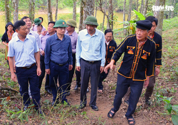 Ông Cao (bìa phải) đưa cựu bí thư Tỉnh ủy Quảng Ninh Nguyễn Văn Đọc (thứ 2 từ phải qua) thăm rừng lim - Ảnh: NGUYỄN KHÁNH
