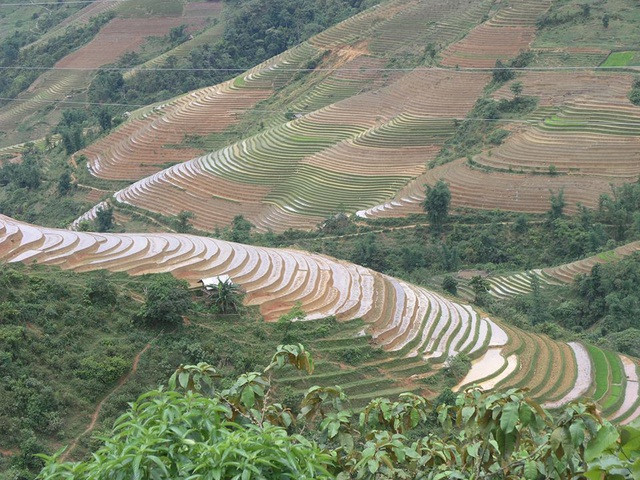 Vùng núi cao Sa Pa có những cánh đồng bậc thang rộng hàng trăm héc ta ở Tả Van, Lao Chải, Tả Phìn, Suối Thầu, Tả Giàng Phình… trông tựa những bức tranh điêu khắc phong cảnh khổng lồ với những đường nét uốn lượn mềm mại, thơ mộng mà các “họa sĩ chân đất” từ năm này tới năm kia tạo nên.