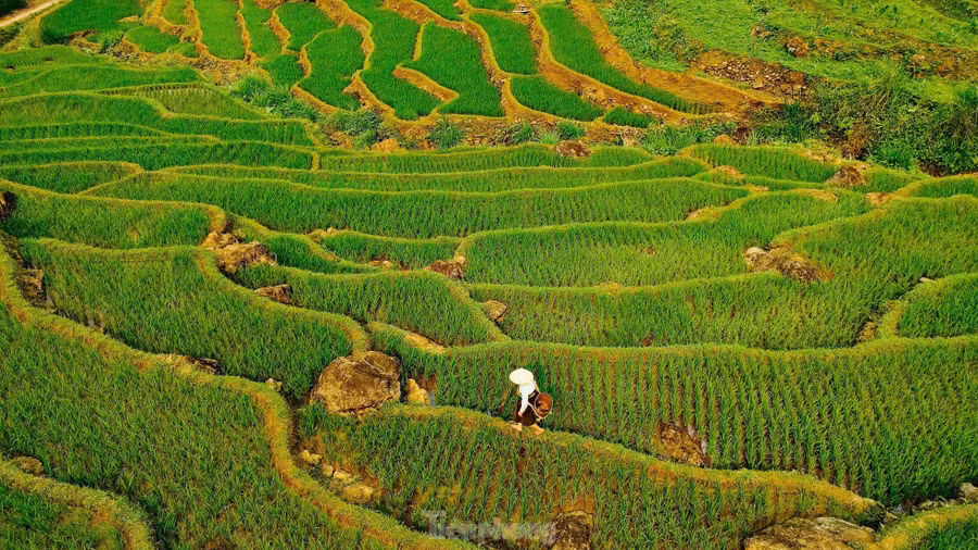 Đến Pù Luông vào những ngày đầu tháng 5, du khách sẽ có dịp ngắm những thửa ruộng bậc thang xanh mướt uốn lượn quanh sườn núi.