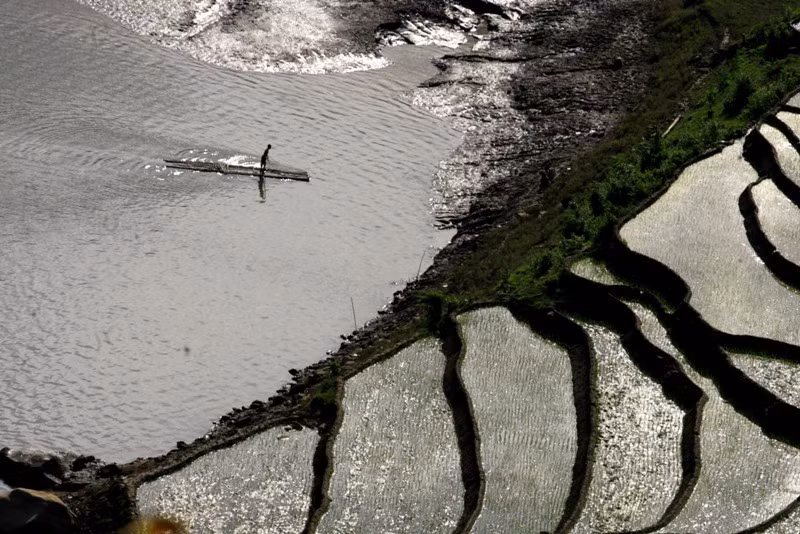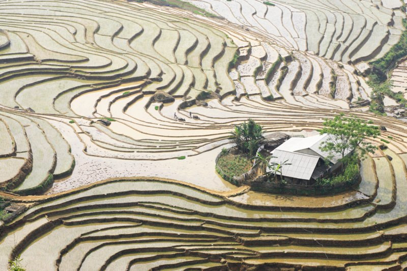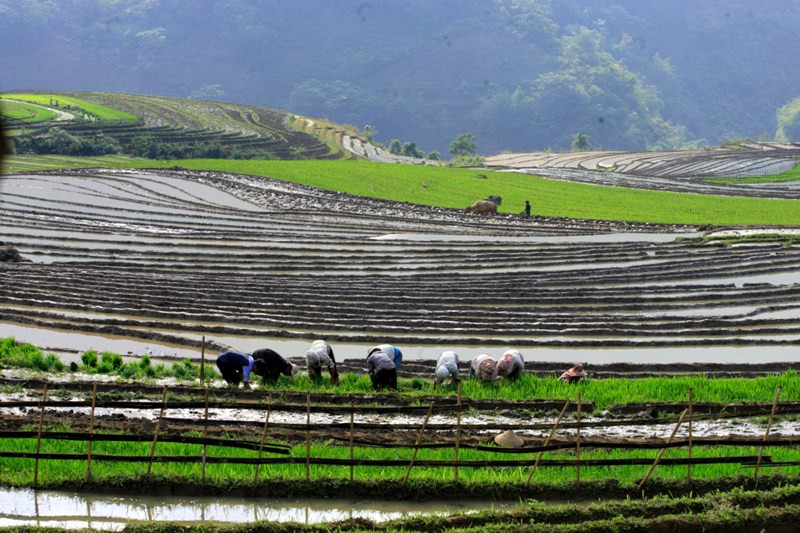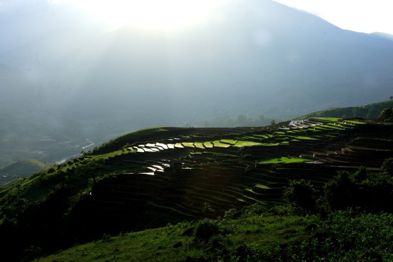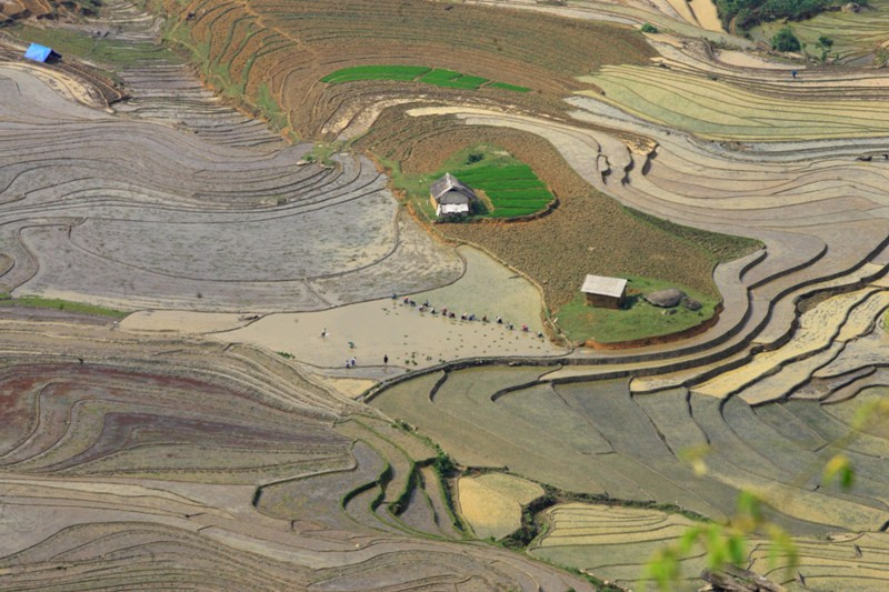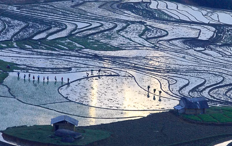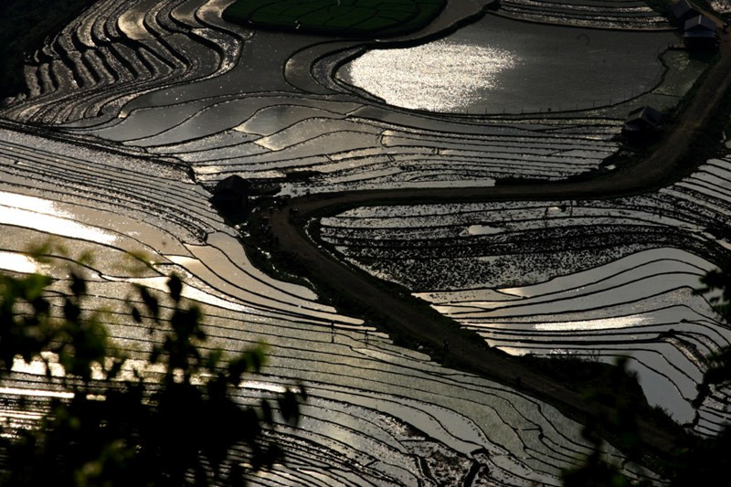 Y Tý, Lào Cai mùa này đang vào vụ cấy. Các thửa ruộng bậc thang đang nhận được nước đổ về từ những trận mưa lớn. Dưới cái nắng tháng 5 chói chang, ruộng bậc thang đầy nước như những tấm thép xếp chồng lên nhau, giúp phong cảnh vùng Tây Bắc càng trở nên hùng vĩ.